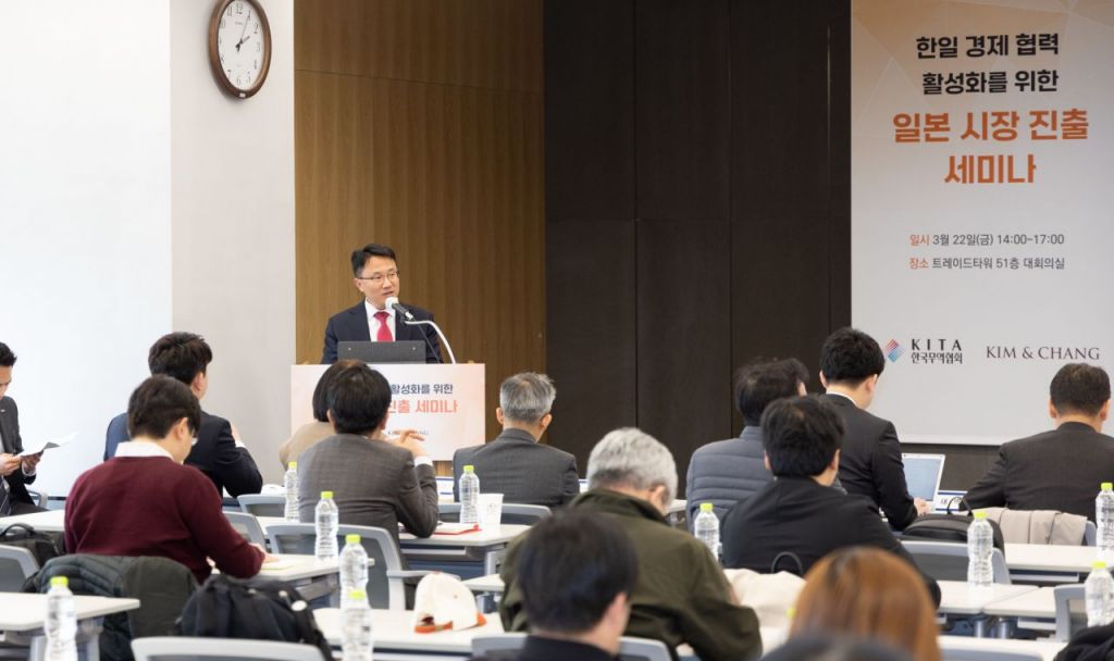 한국무역협회(KITA)는 22일 서울 삼성동 트레이드타워에서 김·장 법률사무소와 공동으로 '한일 경제 협력 활성화를 위한 일본 시장 진출 세미나'를 열었다.