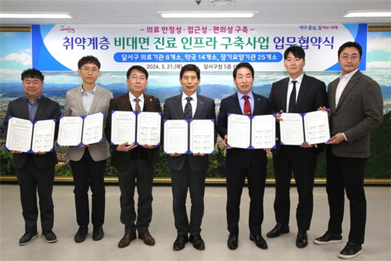 디지털 헬스케어 혁신 기업 솔닥(주)는 대구 남구에 이어, 대구 달서구와 함께 취약계층의 의료접근성 개선을 위한 비대면진료 인프라 구축에 나선다고 발표했다. 대구 달서구는 대구에서 인구가 가장 많은 지역으로, 이번 협력에는 지역 의료기관 7개소, 약국 14개소, 주야간보호센터 25개소가 참여한다. 거동이 불편한 어르신들에게 편리하고 신속한 의료서비스를 제공하고자 하는 목적으로 진행된다.