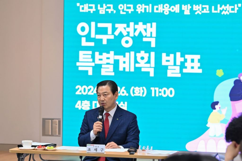 조재구 대구 남구청장이 인구정책 특별대책을 발표하고 있다.