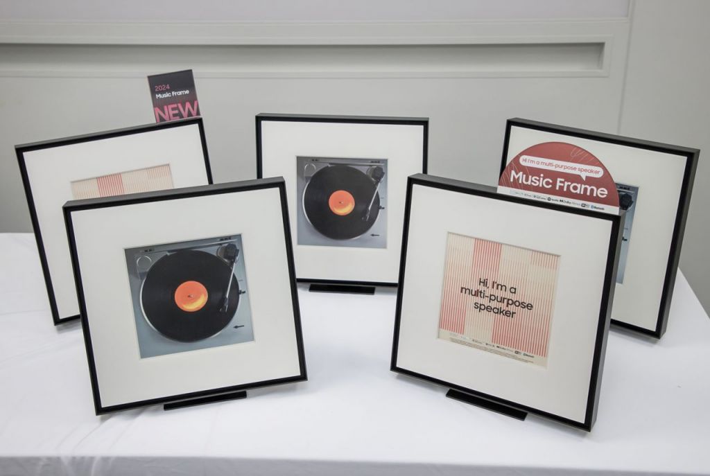 뮤직 프레임은 탈부착이 가능한 포토 프레임에 사용자가 원하는 이미지를 넣어 액자처럼 전면 패널 커스터마이징이 가능한 스피커다. 삼성닷컴 '커스텀 스튜디오'를 통해 개인의 취향을 반영하는 이미지를 아트 패널에 담아 나만의 갤러리를 완성할 수 있다. 가로 35.3㎝·세로 36.5㎝로 콤팩트한 사이즈가 특징이다.