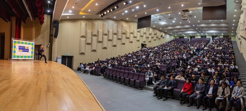 광주대학교는 27일 오후 호심관 1층 대강당에서 문화산업대학, 인문사회과학대학 신입생 500여 명이 참석한 가운데 기초교양 교과목 인생을 바꾸는 시간(이하 인바시) GU인성 과정 '총장과의 토크콘서트'를 진행했다.