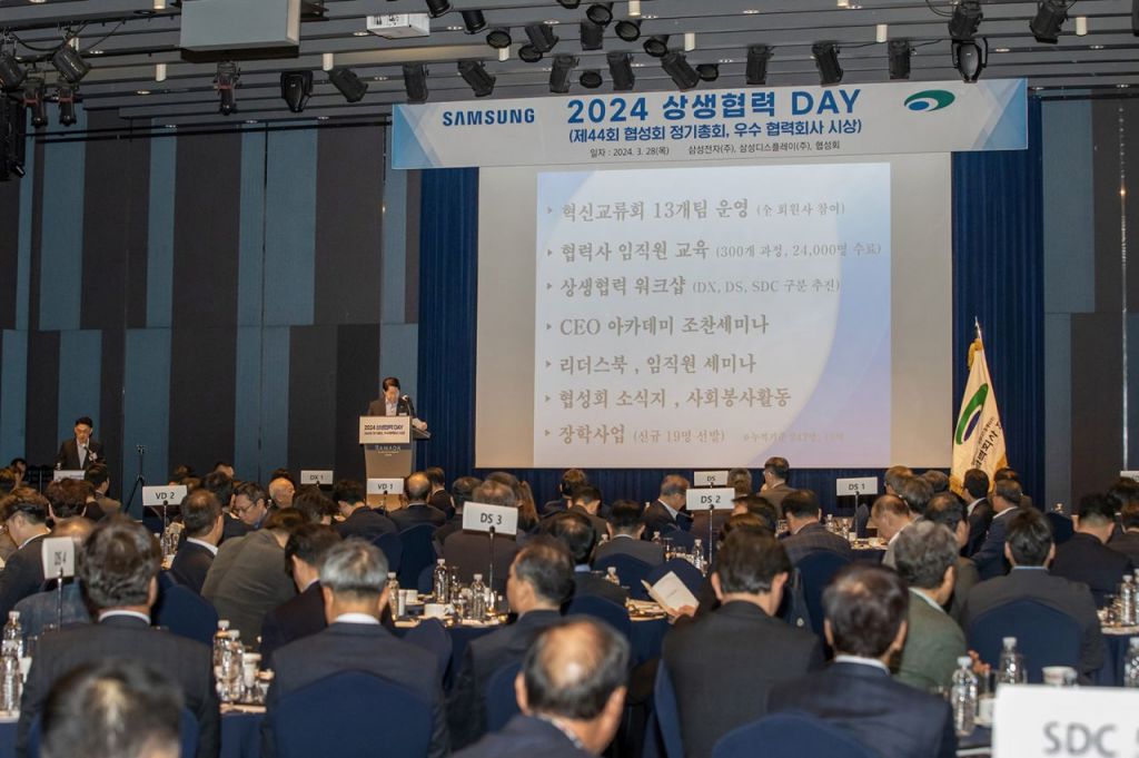 행사에는 한종희 대표이사 부회장을 비롯한 삼성전자·삼성디스플레이 주요 경영진, 협력회사 협의회(협성회) 회장 김영재 대덕전자 대표 등 202개 회원사 대표 등 250여 명이 참석했다. 상생협력 데이는 2012년부터 진행돼 왔다. 삼성 주요 경영진과 협성회 회장단 간 화합의 장이다.