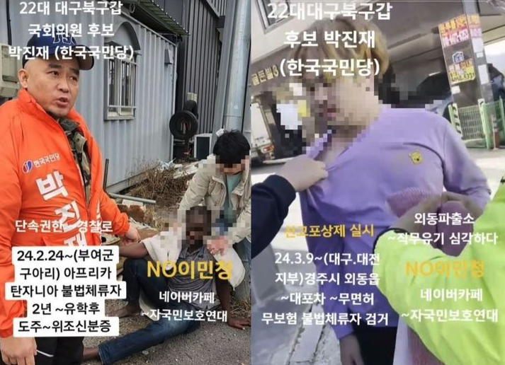 최근 '자국민보호연대'라는 이름의 틱톡 채널에는 대구, 대전 등 전국 각지에서 이주노동자를 강제로 붙잡아 경찰에 넘기는 영상을 다수 올라와 있다. 대부분의 영상에는 군소정당 소속으로 총선 출마자인 A씨가 등장한다. 영상에는 이주노동자를 잡거나 도망치려는 이주노동자에게 소리를 지르는 장면이 담겼다. 최근 올라온 영상에선 무등록 오토바이 불법체류자를 검거한 후 출동한 경찰과 언쟁을 벌이는 모습도 포착됐다.