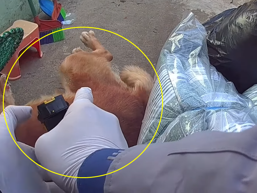 경찰이 개가 있는 쪽으로 다가가려 하자, A씨의 가족은 다급하게 "오지마, 오지마"라고 소리쳤다. 그러나 목줄이 없었던 대형견은 경찰을 발견하자마자 곧바로 달려들었다. 이에 경찰은 주저하지 않고 대형견을 향해 테이저건을 발사했다. 테이저건을 맞고 쓰러진 대형견은 결국 소방 구조대에 인계됐다.