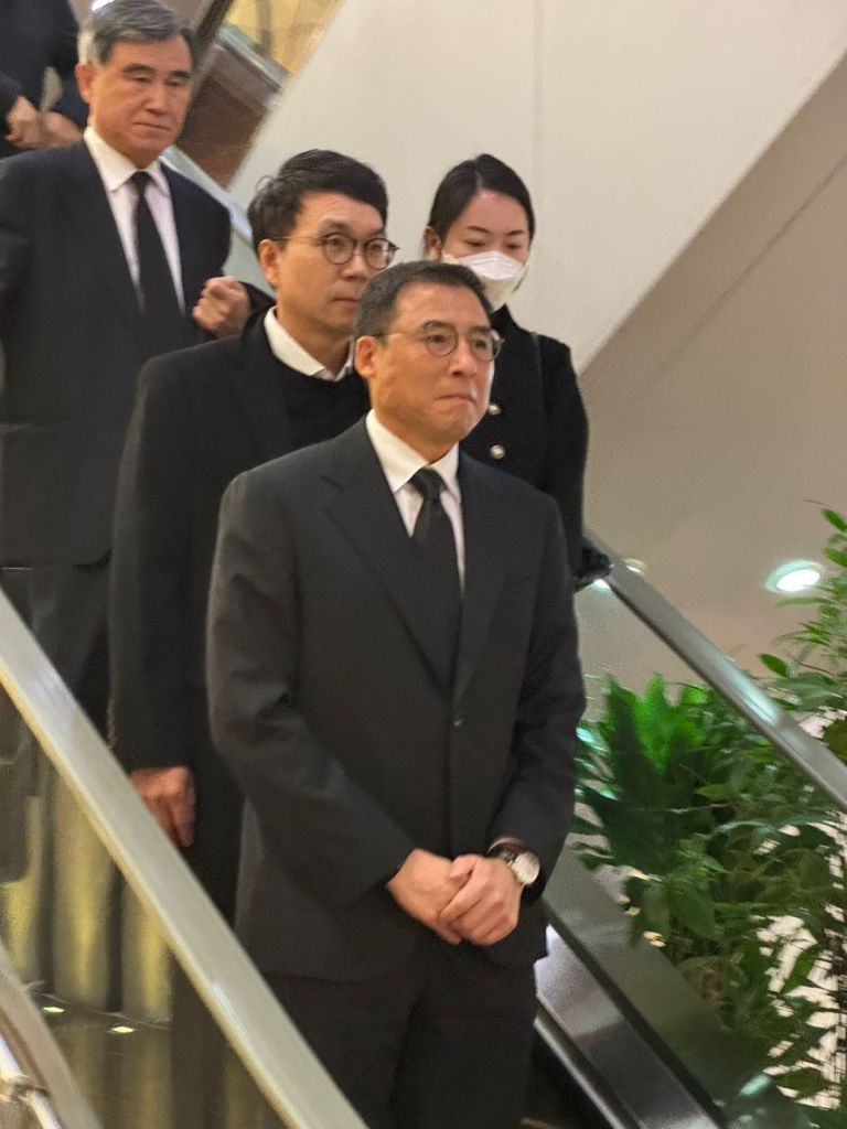 검은색 양복차림에 검은 넥타이를 한 조 전 부사장은 굳은 표정으로 두 손을 모은 채 빈소가 차려진 장례식장 지하로 내려왔다.