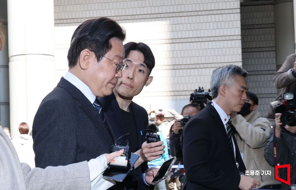 이재명 더불어민주당 대표가 2일 서울 서초구 서울중앙지방법원에서 열린 '대장동·백현동·성남FC 관련 의혹 공판에 출석하고 있다. 사진=조용준 기자 jun21@