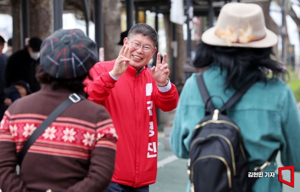 제22대 총선 서울 동대문구 을에 출마한 김경진 국민의힘 후보가 3일 장안평제방길에서 선거 유세를 하고 있다. 사진=김현민 기자 kimhyun81@