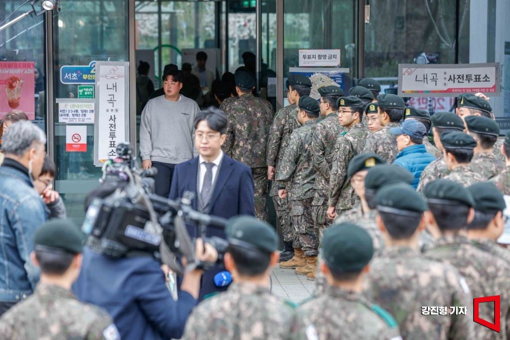 제22대 국회의원선거 사전 투표가 시작된 5일 서울 서초구 내곡동열린문화센터에 마련된 내곡동사전투표소를 찾은 유권자들이 투표를 하고 있다. 사진=강진형 기자aymsdream@