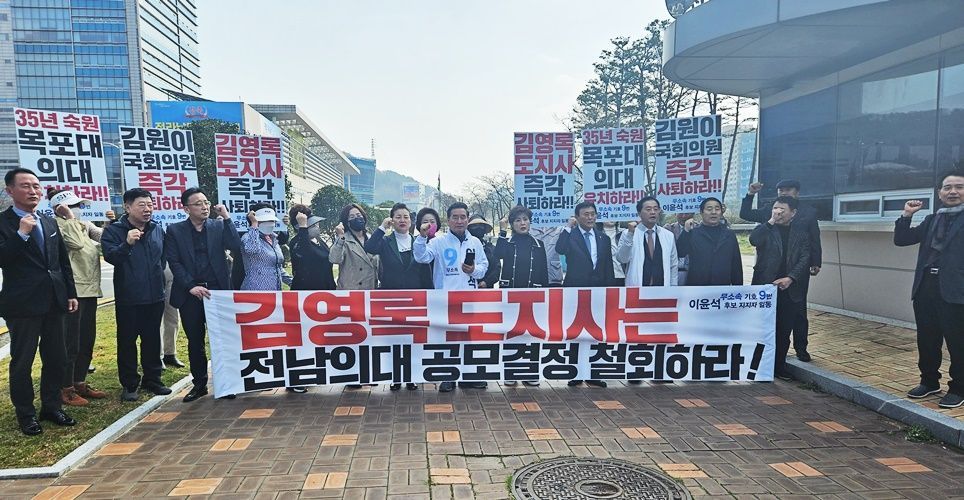 이어서 “김영록 지사는 공모계획을 철회하고 즉각 사퇴하라 의대 유치 문제는 지역별 여론을 수렴하고 협의를 거쳐 다시 논의해야 할 것이다”고 주장했다.