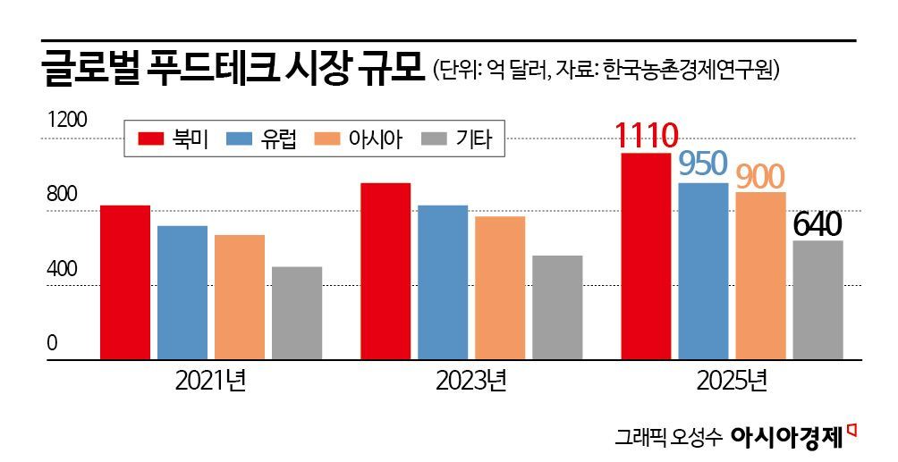 한국농수산식품공사(aT)와 한국농촌경제연구원 등에 따르면 전 세계 푸드테크 시장은 2021년 2720억달러(약 325조원)에서 2025년에는 3600억달러(약 470조원)로 커질 전망이다. 세계 최대 가전·IT 전시회 CES를 주관하는 미국소비자기술협회(CTA)도 글로벌 푸드테크 시장 규모가 2027년 약 3420억 달러(한화 450조원)에 이를 것으로 추산했다. 2022년 열린 CES의 5대 기술 트렌드 중 하나로 푸드테크를 꼽았다.