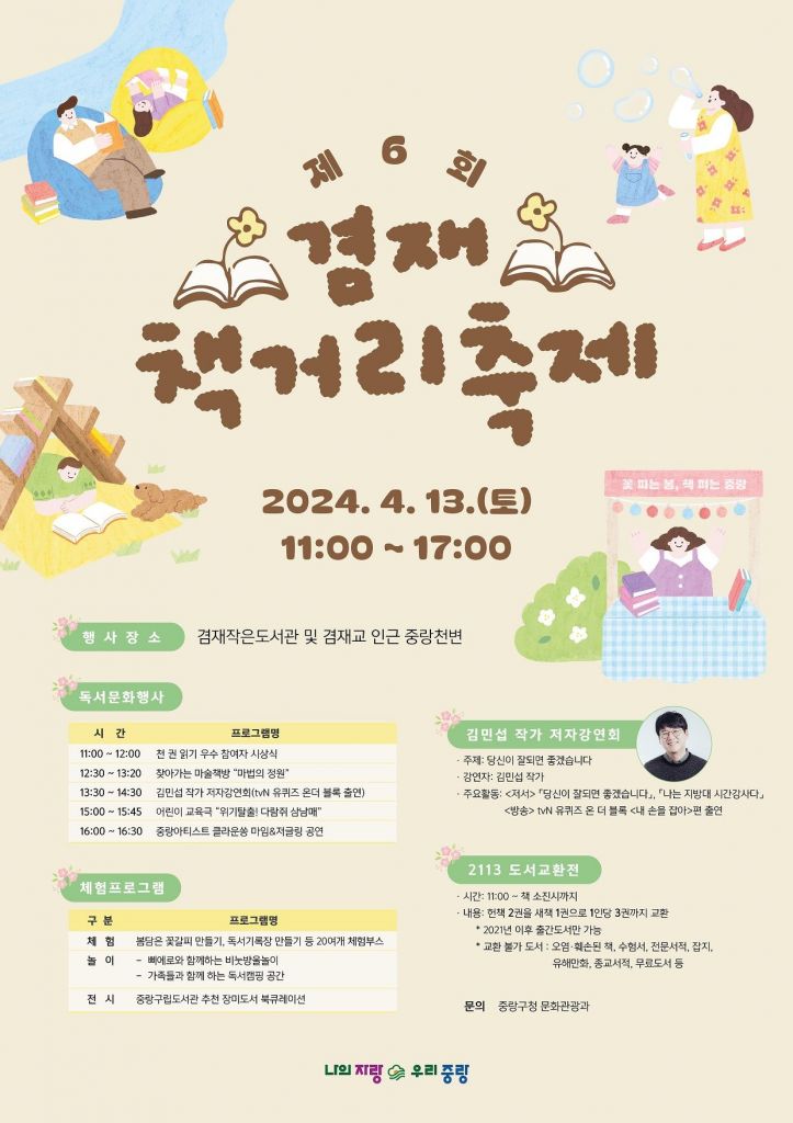 올해는 ‘꽃 피는 봄, 책 펴는 중랑’을 주제로 겸재작은도서관과 겸재교 일대 중랑천변에서 4월 13일 오전 11시부터 오후 5시까지 진행된다.