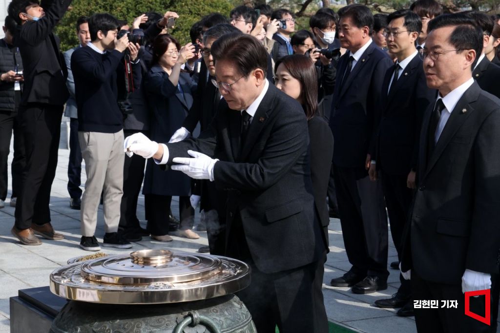 이재명 더불어민주당 대표가 12일 서울 동작구 국립현충원을 찾아 순국선열에 참배하고 있다. 사진=김현민 기자 kimhyun81@