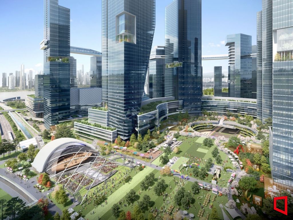 2007년 계획안과 달라진 것은 국제업무지구의 중심부를 용산역 앞으로 배치했다는 점이다. 사람들이 자유롭게 산책하거나 공연장, 전시관이나 상업시설로 이동할 수 있는 거점인 ‘그린스퀘어(8만㎡)’다. 철도 선로 상부에 덮개를 만들어 보행 공간으로 만든 것이다. 용산역 3층 플랫폼에서 걸어나오면 그린스퀘어로 연결되고 강변북로 덮개공원을 지나 한강까지 걸어갈 수 있다. 공중에도 보행로가 만들어진다. 국제업무존 지상층 포디엄 3~4층에는 포디움 브리지, 45층에는 1.1㎞ 구간의 스카이트레일을 만들어 한강과 남산의 풍경을 파노라마처럼 볼 수 있다.