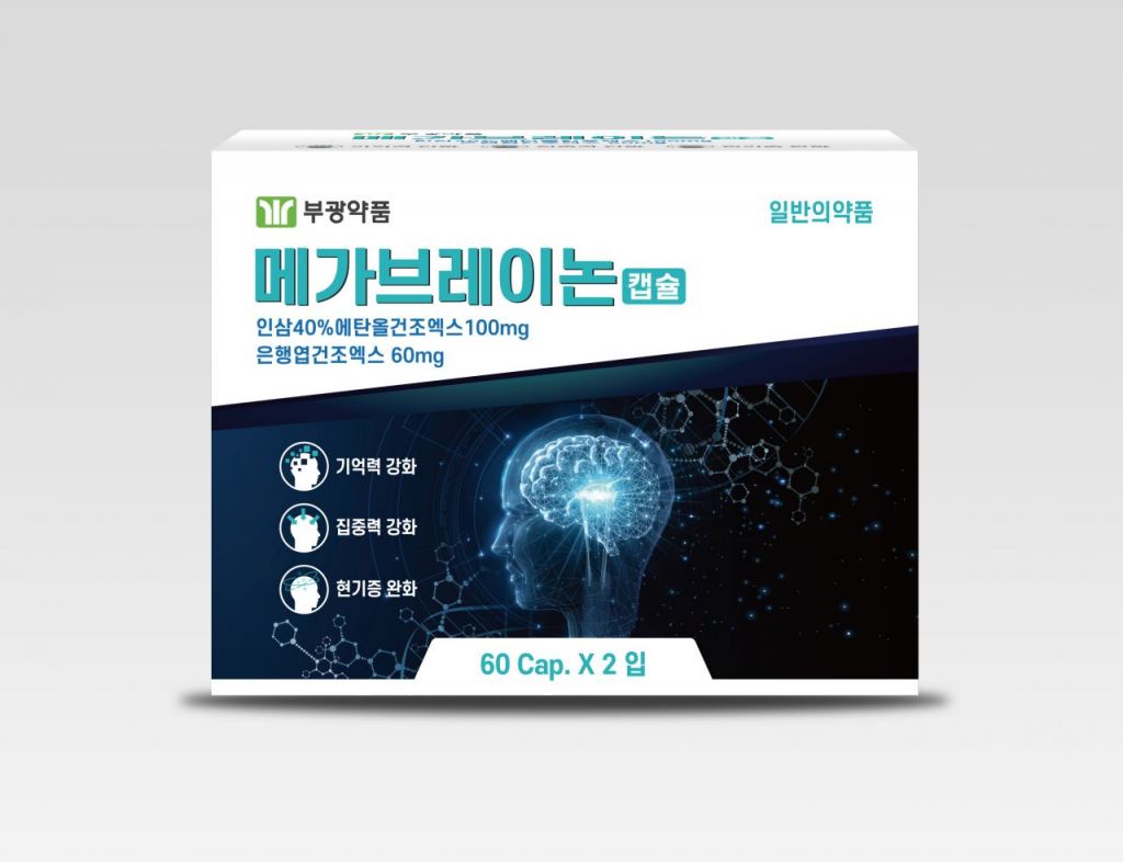 메가브레이논캡슐은 생약 성분인 인삼 40% 에탄올건조엑스 100㎎과 은행엽건조엑스 60㎎를 복합한 일반의약품이다. 기억력 감퇴와 집중력 및 주의력 저하는 물론 현기증과 같은 말초동맥 순환장애 증상 개선에도 효능효과를 나타내는 제품이라는 설명이다. 일반의약품으로 약국에서만 구입할 수 있으며 1일 2회, 1회 1캡슐 경구투여하면 다.