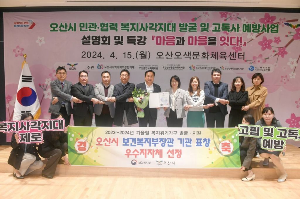 경기도 오산시는 보건복지부가 실시한 '2023~2024년 겨울철 복지 위기가구 발굴 지원 우수 지자체 평가'에서 복지부 장관 표창을 받았다고 16일 밝혔다.