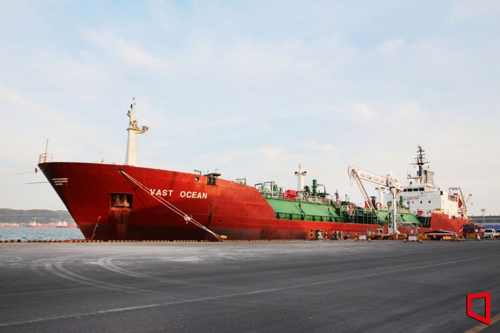 롯데정밀화학은 17일 울산사업장 암모니아 터미널에 인접한 울산항에서 베트남으로 암모니아 수출 첫 물량을 출하했다.(제공=롯데정밀화학)