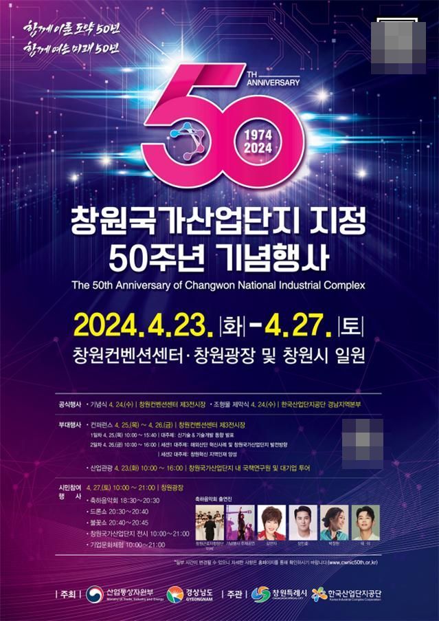 경남 창원특례시는 올해 창원국가산업단지 지정 50주년을 맞아 오는 23일부터 27일까지 기업가·근로자 그리고 시민과 함께하는 기념행사를 개최한다.
