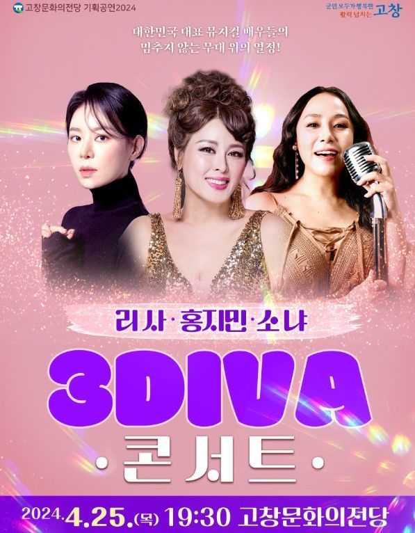 전북 고창군은 오는 25일 오후 7시 30분 고창문화의전당에서 ‘뮤지컬 3DIVA 콘서트’를 개최한다고 23일 밝혔다.