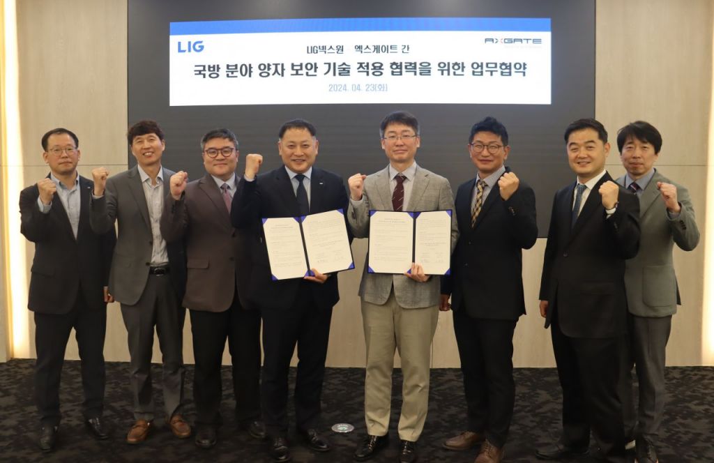 LIG넥스원은 23일 경기도 성남시 LIG넥스원 판교R&D센터에서 엑스게이트와 ‘국방 분야 양자 보안기술 적용 협력을 위한 업무협약’을 체결했다고 밝혔다.