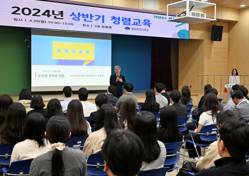 광주광역시 서구(구청장 김이강)는 29일 김이강 서구청장을 비롯해 간부공무원, 승진자, 신규자 등 공직자 100여명을 대상으로 ‘우리와 가까운 청렴’이라는 주제로 청렴교육을 실시했다고 밝혔다.