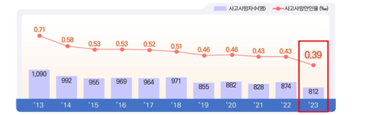 정부는 이를 통해 경제협력개발기구(OECD) 38개국 중 34위(0.43)인 사망사고 만인율을 2026년까지 OECD 평균(0.29) 수준으로 낮추겠다는 계획이다.