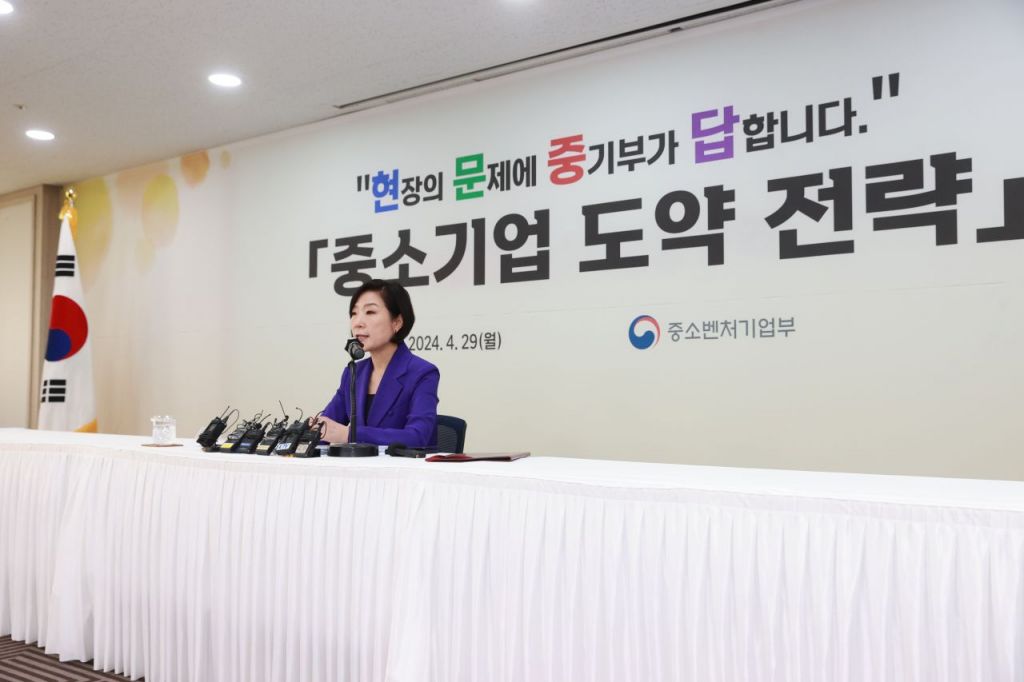 오영주 중소벤처기업부 장관이 29일 서울 영등포구 중소기업중앙회에서 '중소기업 도약 전략'을 발표하고 있다. (사진=중소벤처기업부)