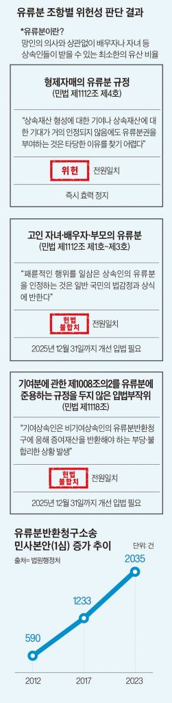 이번에는 합헌 결정이 났지만 향후 법률 개정으로 이어질 가능성이 있는 쟁점도 있어 상속분쟁의 ‘변수’로 남았다.