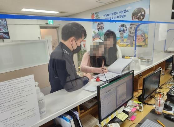 제주자치경찰단 공항사무소에서 민원을 접수하고 있는 관광객들의 모습. [사진=제주자치경찰단]