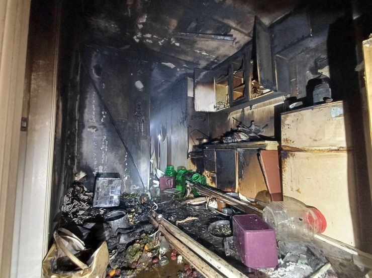 소방당국은 주방 전자레인지 인근에서 불이 난 것으로 보고 정확한 화재 원인을 조사 중이다.