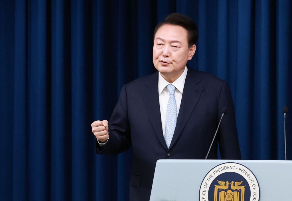 윤석열 대통령이 7일 서울 용산 대통령실 청사에서 신임 민정수석으로 내정한 김주현 전 법무차관을 소개하며 출입기자의 질문에 답하고 있다. [이미지출처=연합뉴스]