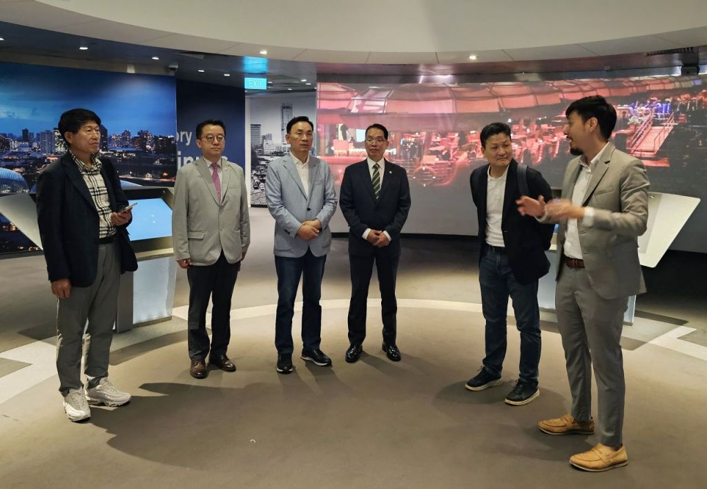 싱가포르 도시재개발청의 도시설계 책임자인 옹 레이 후아(오른쪽 1번째)의 설명을 듣는 복진경 강남구의회 행정재경위원장(왼쪽 4번째), 조성명 강남구청장(왼쪽 3번째), 윤석민 강남구의원(왼쪽 2번째), 이호현 강남구 행정국장(왼쪽 1번째)