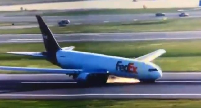 미국 보잉사 항공기 사고가 잇따르는 가운데 이번엔 특송업체 페덱스가 운영하는 보잉767 기종 화물기가 착륙장치(랜딩기어) 이상으로 활주로에 동체 착륙했다.