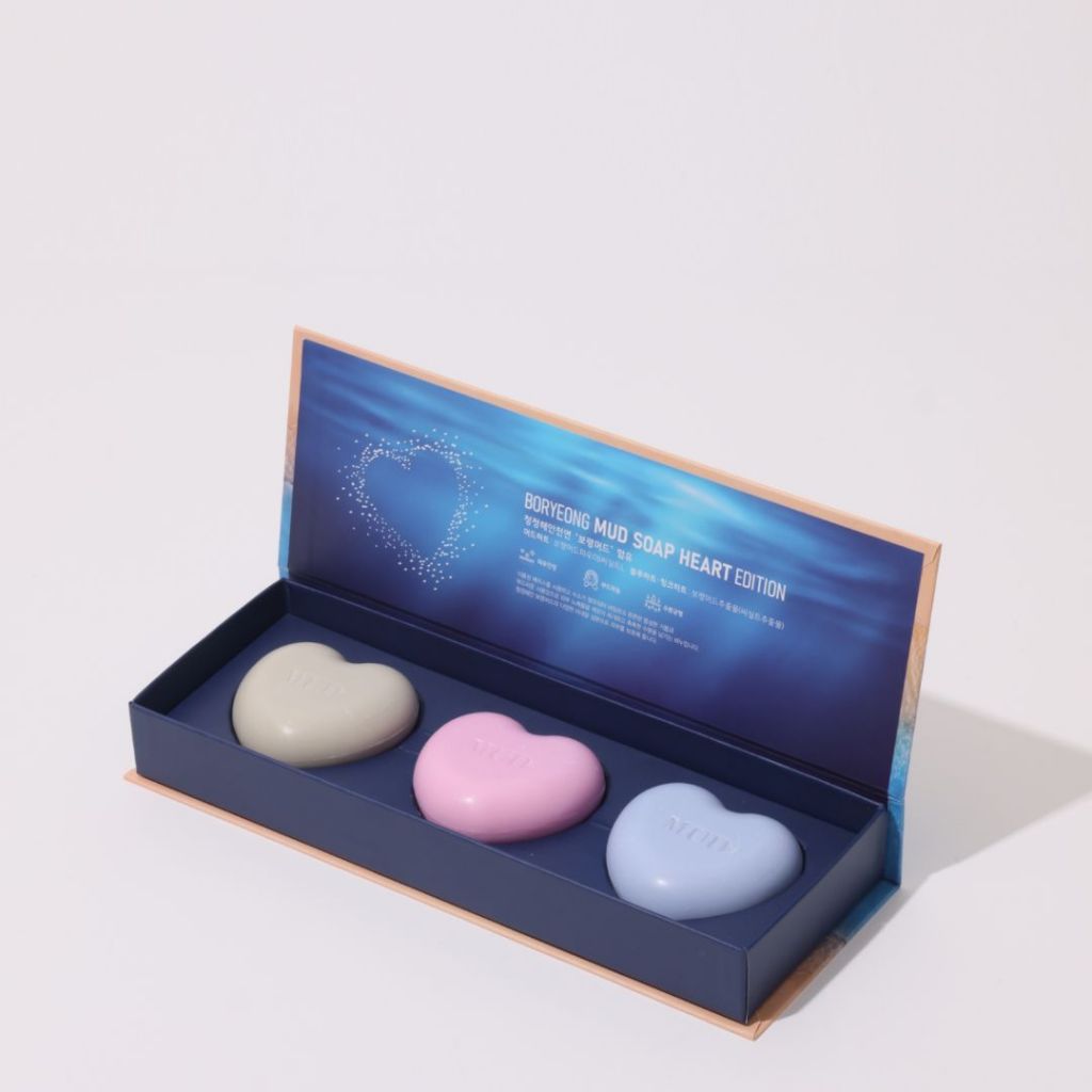하트 에디션은 기존 머드비누에 수소수 성분이 첨가돼 보습에 효과적이며, 다양한 색상과 향으로 선물용으로 좋다.