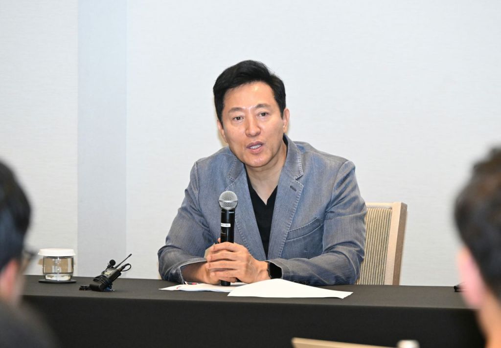 아랍에미리트(UAE) 출장에 나섰던 오세훈 서울시장은 지난 9일(현지시간) 아부다비 시내의 한 호텔에서 동행기자단과 간담회를 진행했다.[사진출처=서울시]