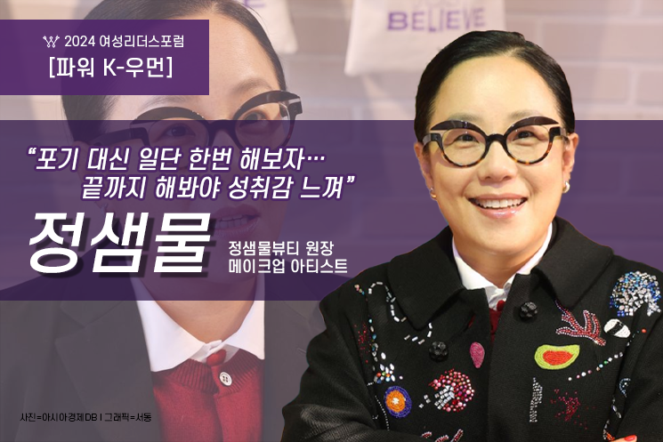 정 원장은 화가를 꿈꿨던 10대 소녀였다. 하지만 아버지의 사업 실패로 경제적 어려움을 겪으며 여러 아르바이트를 해야 했던 정 원장은 1991년 메이크업 아티스트의 길에 접어들었다. 당대 최고 여배우의 메이크업을 맡아 국내 메이크업 트렌드를 이끌어왔다. 현재는 자신의 이름을 내건 연 매출 700억원대(2023년 기준) K-뷰티 브랜드 ‘정샘물뷰티’의 수장으로, 국내시장을 넘어 해외로 발돋움하고 있다.
