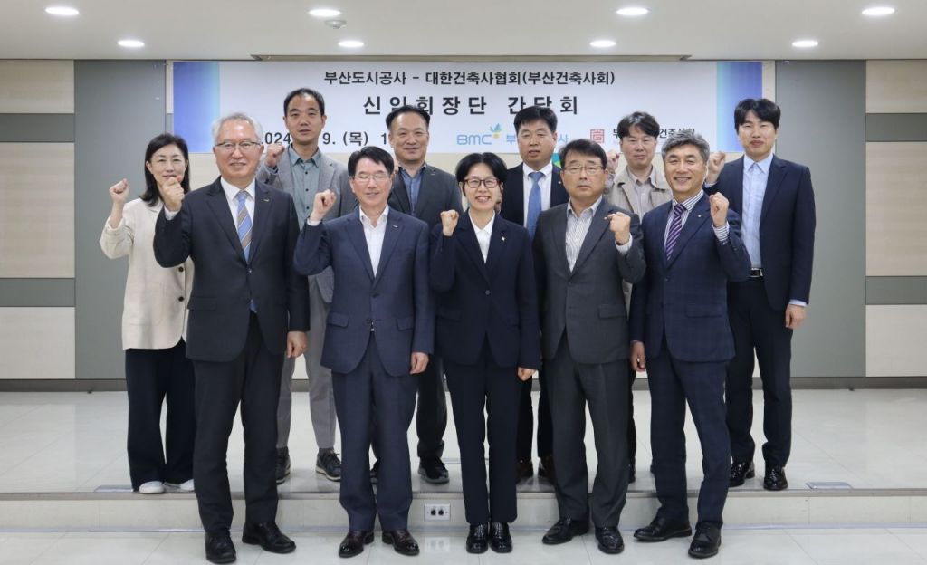 부산도시공사(사장 김용학)가 부산건축사회 신임 회장단 초청 ‘지역건설 전반에 대한 현안사항 및 발전방향’ 주제로 지난 9일 간담회를 가졌다.