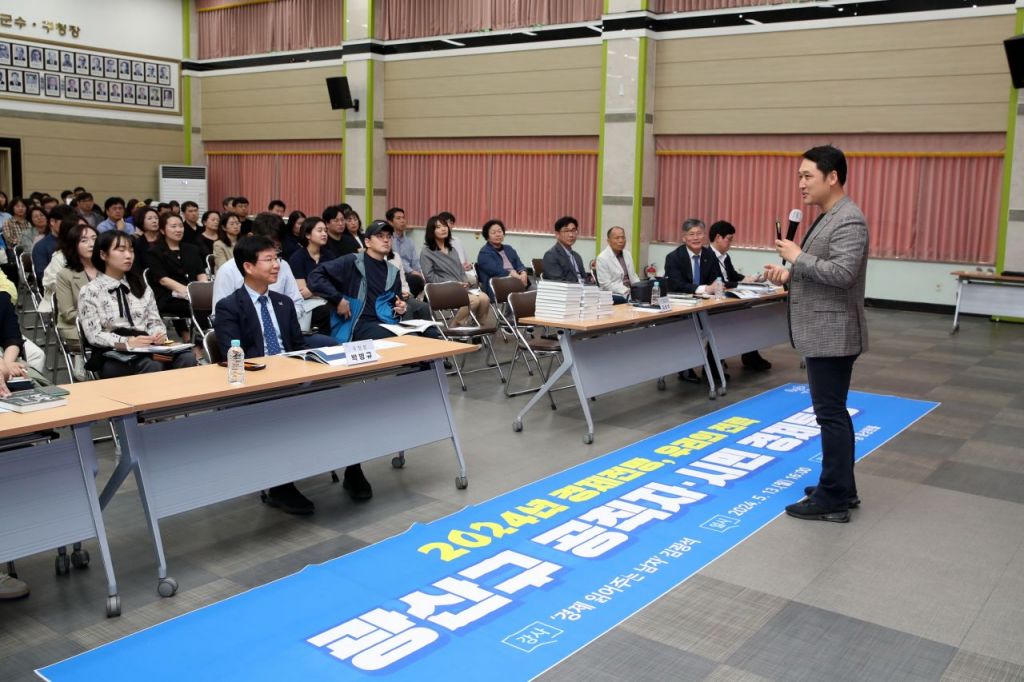 김광석 교수는 지난 13일 광산구가 마련한 세 번째 경제특강에서 ‘2024년 경제전망, 우리의 전략’을 주제로 강연했다.