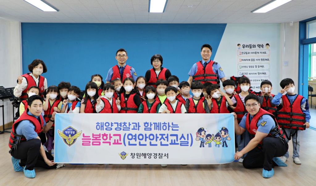 경남 창원해양경찰이 관내 초등학교에서 연안안전교실을 운영하는 늘봄학교 교사로 활동한다.