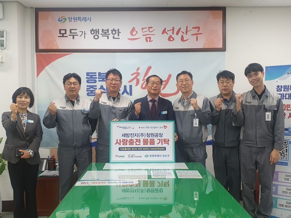 한편 세방전지 창원공장은 지역사회의 어려운 이웃을 돕기 위해 매년 생필품 지원, 식료품 지원, 장학금 전달 등 다양한 사회공헌활동을 실천해오고 있다.
