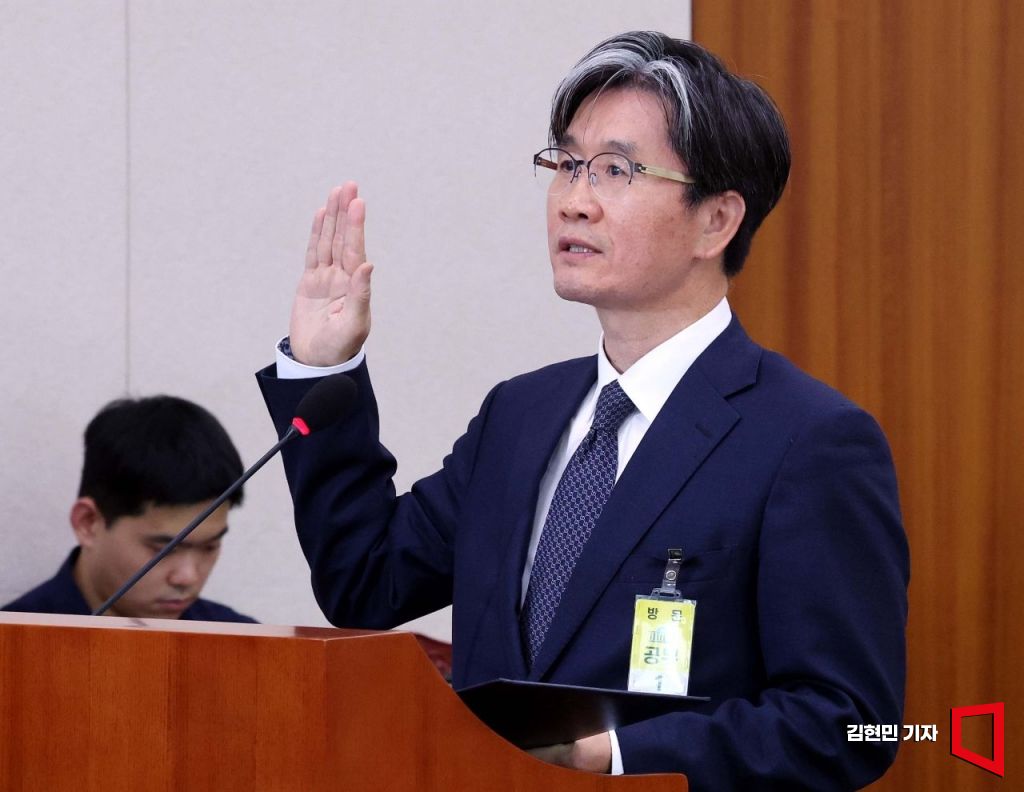 오동운 고위공직자범죄수사처장 후보자가 17일 국회 법제사법위원회에서 열린 인사청문회에서 선서하고 있다. 사진=김현민 기자 kimhyun81@