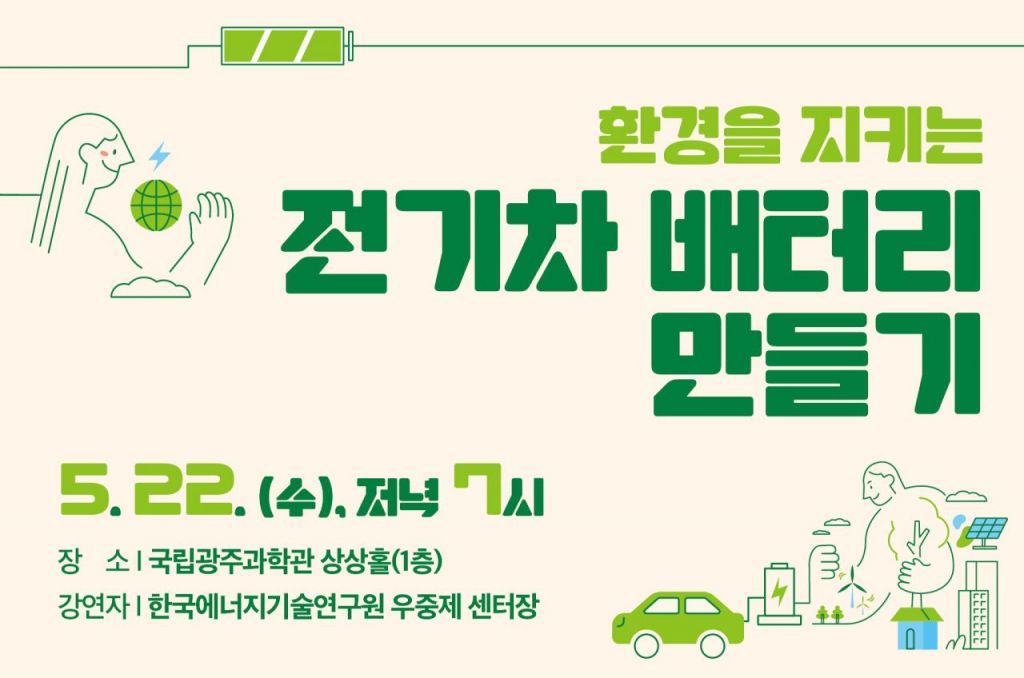 한수민 국립광주과학관 과학문화실 연구원은 “범지구적 환경문제가 대두됨에 따라 환경문제를 해결하기 위한 친환경 분야의 최신 과학기술 및 전기차 시장의 미래와 동향 등에 대해 알아볼 수 있는 흥미로운 강연이 될 것이다”고 말했다.