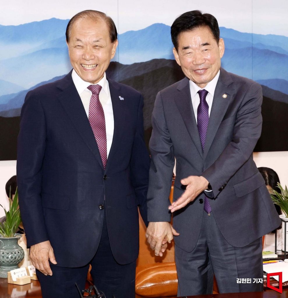 황우여 국민의힘 비상대책위원장이 20일 국회에서 김진표 국회의장을 예방하고 있다. 사진=김현민 기자 kimhyun81@