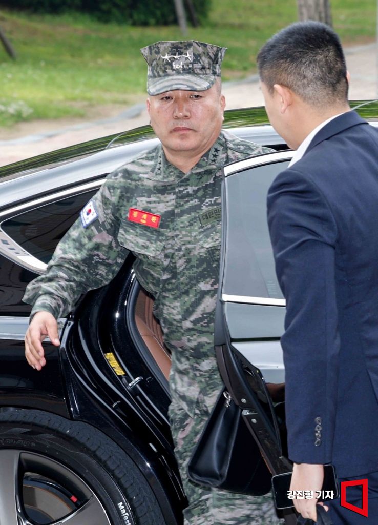 김계환 해병대 사령관이 21일 채 해병 순직 사건 수사외압 의혹 관련 조사를 받기 위해 경기 정부과천청사 고위공직자범죄수사처로 들어가고 있다.