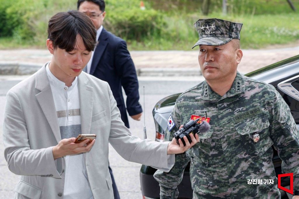 김계환 해병대 사령관이 21일 채 해병 순직 사건 수사외압 의혹 관련 조사를 받기 위해 경기 정부과천청사 고위공직자범죄수사처로 들어가고 있다.