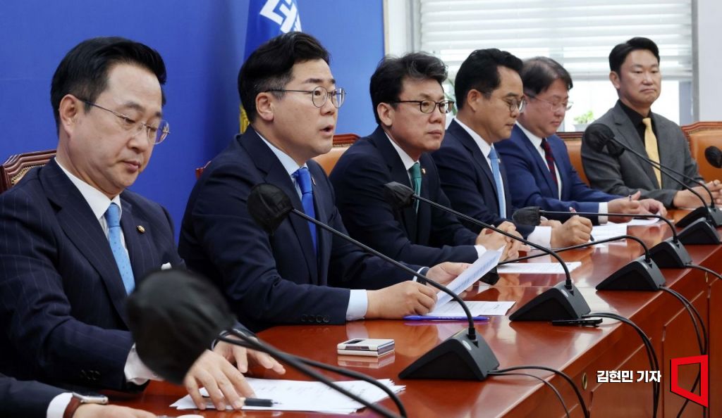 박찬대 더불어민주당 원내대표가 21일 국회에서 열린 원내대책회의에서 발언하고 있다. 사진=김현민 기자 kimhyun81@