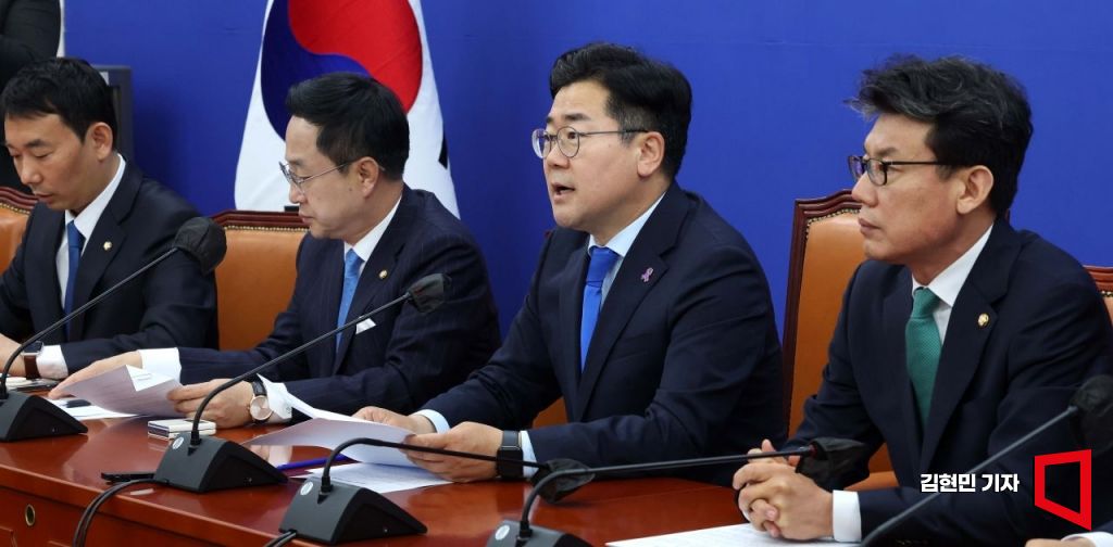 박찬대 더불어민주당 원내대표가 21일 국회에서 열린 원내대책회의에서 발언하고 있다. 사진=김현민 기자 kimhyun81@