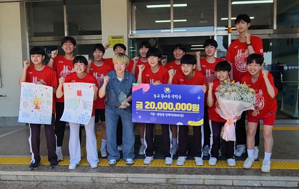 부산 동주여자중학교(교장 김경희)는 지난 14일 부산 BNK 썸의 포인트가드로 활약하고 있는 졸업생 안혜지 선수로부터 장학금 2000만원을 전달받았다.