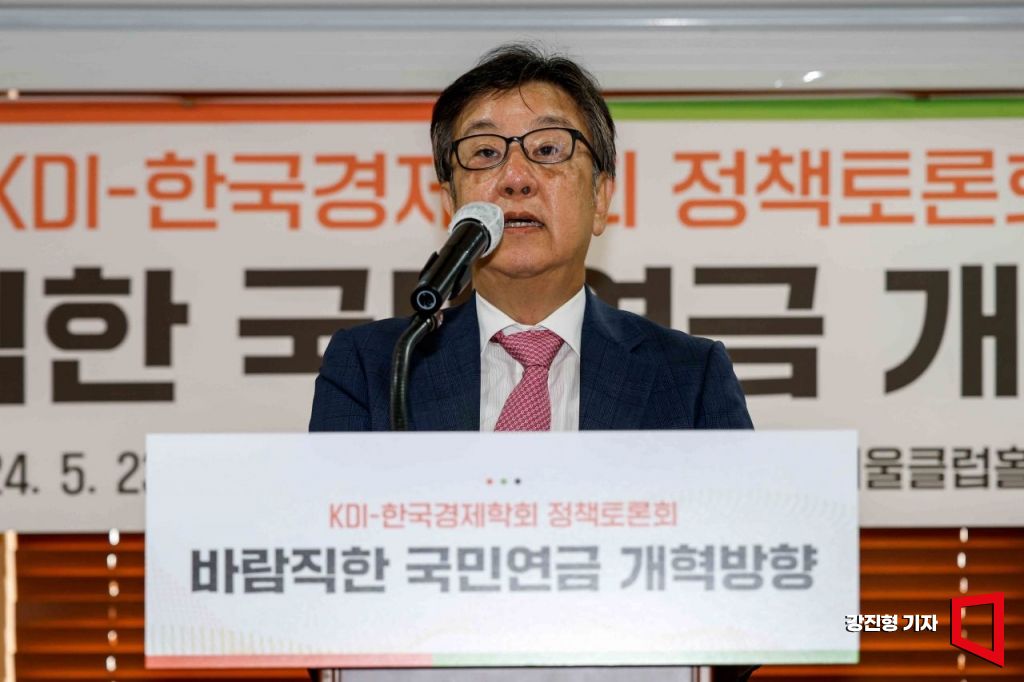 조동철 KDI 원장이 23일 서울 중구 프레스센터에서 KDI와 한국경제학회 주최로 열린 '국민연금 개혁 방향 토론회'에 참석해 개회사 하고 있다.