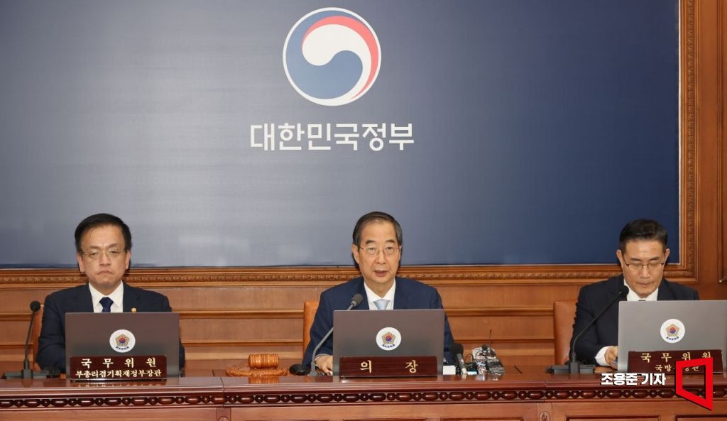 한덕수 국무총리가 29일 서울 종로구 정부서울청사에서 열린 임시국무회의에 참석, 발언 하고 있다. 이날 회의는 야권이 국회에서 단독 처리한 전세사기특별법을 비롯한 5개 중 4개 법안들에 대해 재의요구권(거부권) 안건을 심의 의결한다. 사진=조용준 기자 jun21@