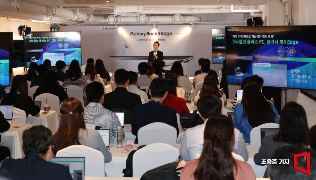 삼성전자 MX사업부 갤럭시 에코 상품기획팀장 박준호 상무가 30일 서울 용산구 케이브하우스에서 한층 강력해진 갤럭시 AI 기능을 탑재한 '갤럭시 북4 엣지' 를 공개하고 있다. '갤럭시 북4 엣지'는 35.6㎝(14형) 1종과 40.6㎝(16형) 2종 등 총 세 가지 모델로 출시되며, 휴대가 간편한 얇고 가벼운 디자인이 특징이다. 사진=조용준 기자 jun21@